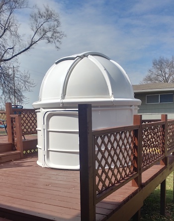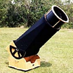 The Starmaster 14.5" The largest of the observatory's telescopes is the 14.5" Starmaster Newtonian telescope. This telescope is used not only for lunar research, but also for observing "deep sky" objects such as galaxies, star clusters, nebulae and other objects. Equipped with the Sky Engineering SkyCommander digital computer, it is capable of locating objects in the sky with pinpoint accuracy. The telescope uses a 2" eyepiece format, allowing use of the popular Nagler style eyepieces which give breath taking wide angle views of both the moon, planets and "deep sky" objects. This is also the main telescope used in the outreach program. |