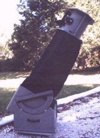 The Starmaster 8" The second largest of the observatory's telescopes is the 8" Starmaster Newtonian telescope. This telescope is a dedicated lunar telescope, and is used in the occultation (stellar eclipse) research program. The telescope uses the 1¼" format eyepiece, since when trying to view stars close to the limb of the moon, the narrower field of views help reduce the glare caused by the moon's brightness. The telescope is small and compact and is easily transportable to remote observing sites to collect the data needed in this research program.Occasionally it will be used for the public outreach programs. |