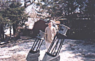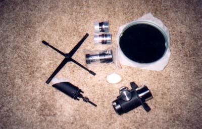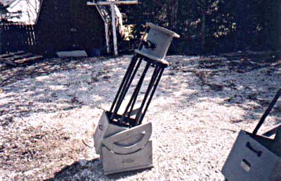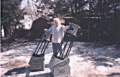 On March 18th 2001, the telescope was completed. The student met with the mentor to do the finally assembly, fix a few problem areas, and align (collimate) the optical components. The setup took less than 5 minutes. The movement of the telescope both in altitude and azimuth was silky smooth. Although no planets or moon were visible during the daytime hours, views of trees and houses provided sharp, crisp images through the eyepieces that were purchased. Both the student and the mentor agreed this was truly a fine optical instrument, which will provide spectacular views of the planets, moon, star clusters, galaxies and nebulae! |