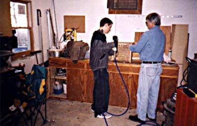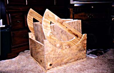 This picture shows the completed "rocker box" before final painting. The rocker box is what supports the primary mirror, and provides movement of the telescope in both altitude and azimuth. The design is known as a "Dobsonian Mount", named after the man who fostered the simple and novel design. John Dobson is a member of the San Francisco Sidewalk Astronomers. The group takes their telescopes out to the streets of San Francisco for the public to view the planets and moon. The design of the telescope allows ease of set up, portability and low maintenance. |