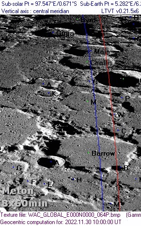 Description of Meton (from Virtual Moon Atlas): Wrecked formation with clover shape composed of Meton, Meton C and Meton D. Little steep slopes. Little high walls. Flat floor of 3 immense craters and communicating. Clear bands. Hills and craterlets.
