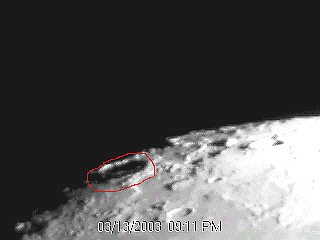 The digital image shows the picture being taken on 3/13/2003 at 9:11pm. It is difficult to tell whether this is an actual lunar light ray, or some crater floor detail being illuminated by the sun. I am therefore placing the crater in the database for further follow up. Using the date and time on the digital image, and with Puerto Rico being in the Atlantic Time Zone, which is 4 hours west of Greenwich. The date and time therefore in universal time becomes, 3/14/2003 at 1:11hr UT. Since no site coordinates were given, the general longitude and latitude of W66.5 and N18.5 will be used in computations.