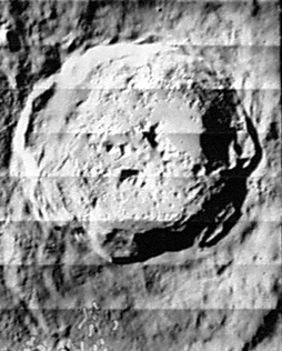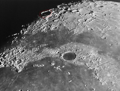 As a follow-up to my original observation of Philolaus, I took this image last night, 05/12/03 UD at 00:29 UT. I used an 8"SCT, f/10 with a Logitech AstroCam CCD camera. I have marked the suspect area in the copy image. I'm not convinced that this is a sunrise ray. I suspect that it is the illumination of a part of the crater rim wall, south side, where there appears to be a "cleft" or "groove". This feature has a shadow that makes the crater appear wider than it really is and appears to "mimic"a sunrise ray. Either way, this is an interesting feature for further study. If there is any other observer who can shed some light on this, pardon my pseudo-pun, I would welcome the feedback. I'm also reaserching the Consolidated Lunar Atlas to confirm or deny my hypothesis. I'll keep you posted.(This is an image from the Consolidated Lunar Atlas, Photo # C4079. I have marked Philolaus crater in red. You can see something within the crater which looks like a sunrise ray. However I'm still not convinced that it is a sunrise ray.) Regards, Daniel del ValleClear and Steady Skies, Daniel del Valle Location: 18.26N, 67.09W Aguadilla, Puerto Rico |