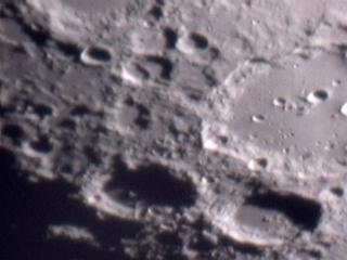 06/10/2003 2-3UT & 4UT Wichita Falls, Tx 33.824N 98.544W Seeing fair 5of10, transparency low 3of10, 80deg.F, SW wind 15MPH 8"f/6 reflector at x260 Another surprise at Scheiner crater (lat 60.5S, Lon 27.8W) with a bright stripe falling off from the tier-stepped western wall at what seemed to be a well defined yet undetermined craterlet (approximately 61S, 30W). I am not so sure it was Scheiner C which seemed too far north. The "stripe" appeared to take on the attributes of a sunrise ray except it never changed as the central craterlet Scheiner A became partially lit. I assume it was the west-to-east crest ridge which runs from the southwest wall to the center of the crater that was illuminated. What is curious to me is the craterlet outlined at the top of the west rim. If it was indeed Scheiner C then the "stripe" could be a sunrise ray. If not then there is a craterlet that is not very apparent on any good chart I have. See Rukl 72. Another look later confirmed the "ray" was under (east of) Scheiner C. This put the ray a bit further north than my first calculations (60S, 30W). The southern border of the ray was actually a shadow from the western wall of the craterlet Scheiner A stretching across the floor to the western wall. The west-east ridge was very apparent by 4UT thus dispelling the idea of the stripe being the ridge. A webcam shot was taken well after the ray had widened (4:30UT).-David Ryle |